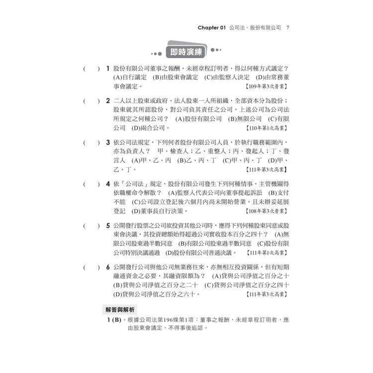 每個章節念完後,都附有精選試題練習,開辦至今的試題,每一屆都會有相似甚至是相同的題目一考再考,若相同題目一再看到,你可能會覺得煩,但同時表示該題是重點中的重點!用大量試題演練掌握題庫命題趨勢,將錯誤的題目細心訂正,並熟讀書中的解析,相信本書是你考取證照的最佳捷徑!