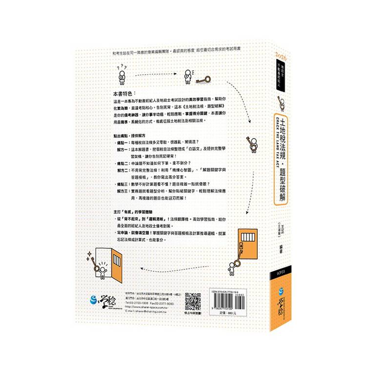 這是一本專為不動產經紀人及地政士考試設計的高效學習指南,幫助你化繁為簡,直達考點核心。告別死背,這本《土地稅法規.題型破解》是你的備考神器,讓你事半功倍,輕鬆應戰。掌握得分關鍵,本書讓你用最精準、系統化的方式,徹底征服土地稅法及相關法規。