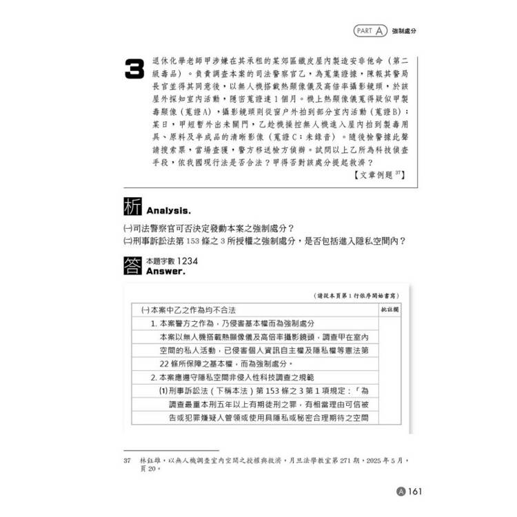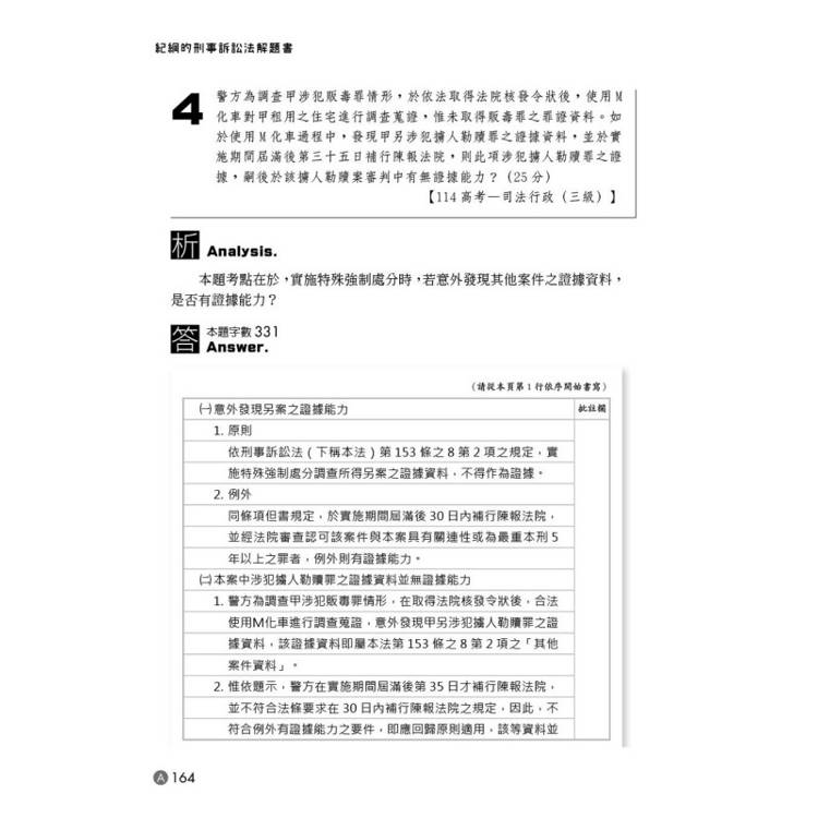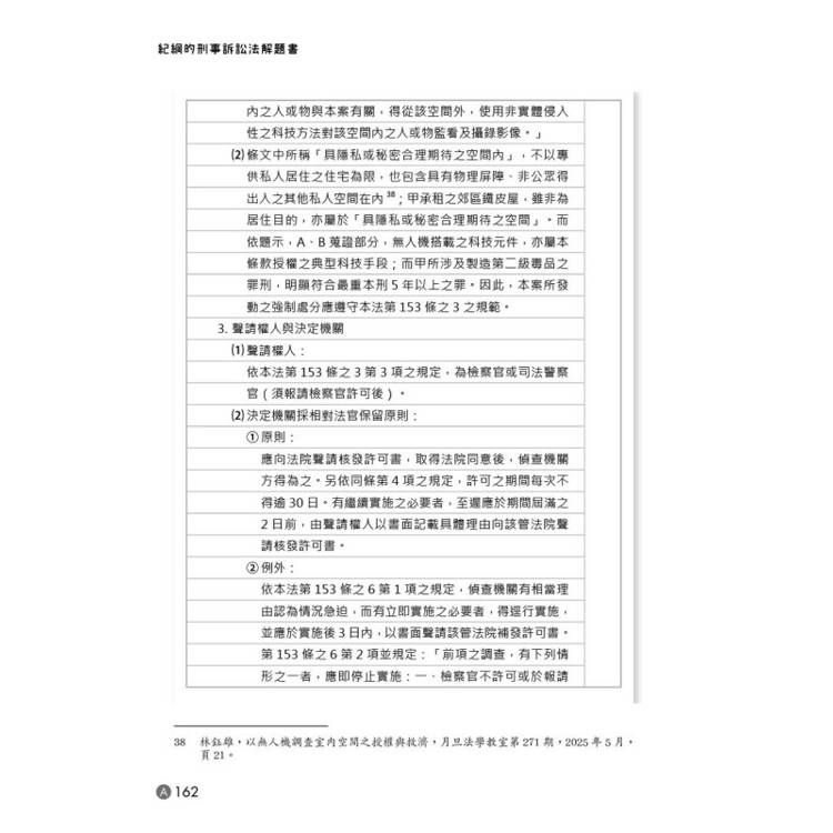 ▲新增重點懶人包:新增114年度重要考題、調整新修法-刑事訴訟法第205條之2、第116條之2相關擬答、加入最新憲法法庭115年憲判字第1號判決見解討論、修訂傳聞法則相關題目擬答、增加特殊強制處分單元、最新文章例題。
