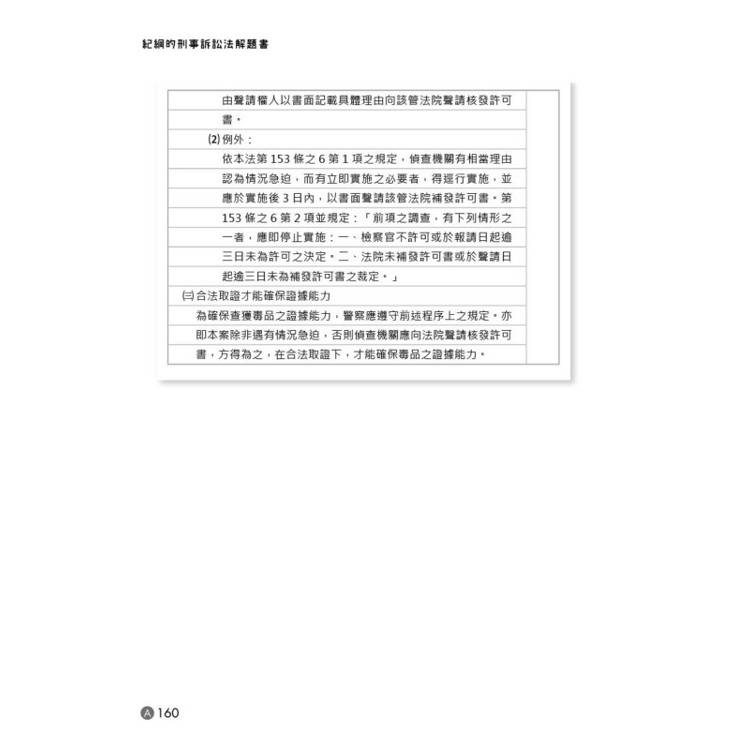 △從中精選相同考點且值得練習的題目,透過本書依照每個法律要件的編排邏輯,讓刑事訴訟法的學習更有效率!