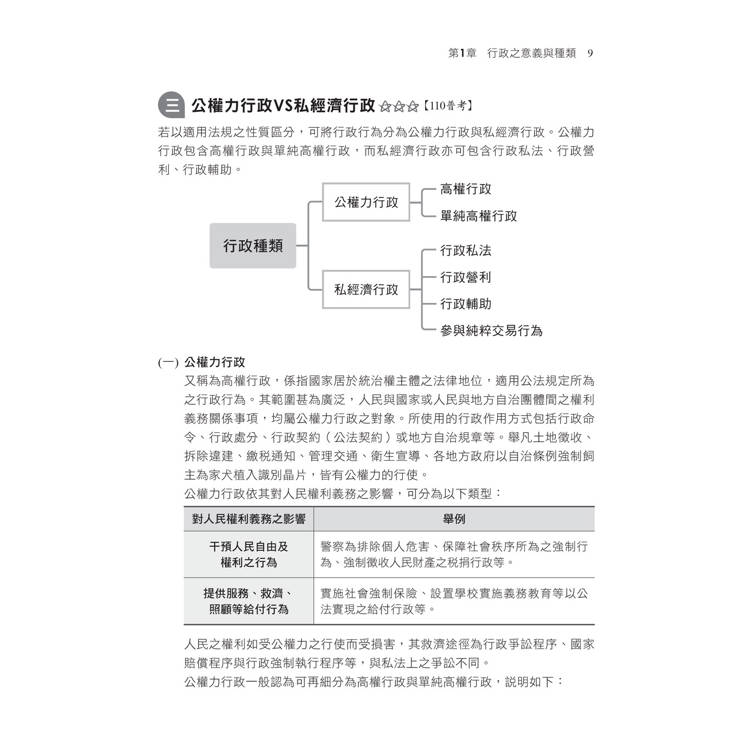 單純的文字敘述可能有些枯燥,而使用圖像與表格的記憶的速度與強度不僅比文字快,同時也更容易內化成答題直覺,書中內容將重要的觀念彙整成圖表,方便你記憶。另外,也將行政法最重要的概念以圖表填空的方式呈現,建議各位在看完課文後,動手畫圖填空,文字閱讀+圖像記憶=高分途徑!