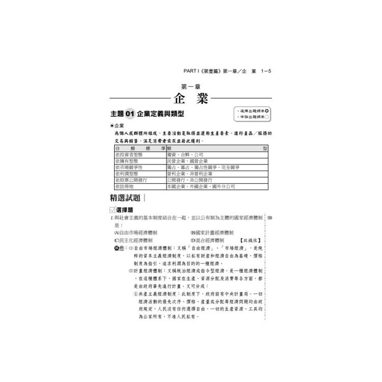 所有企管考試題型(選擇、申論、填充、問答)皆適用。內容將企業管理具代表性的主題綜整並輔以考題解析,加強讀者解題能力。內容主題儘量以「表格」方式整理,讓讀者一目了然。本書為題庫書,重心在於摘錄重點內容並教導讀者如何解題,若能搭配作者的《企業管理(企業概論‧管理學)》一書一併使用,有如虎添翼的效果。作者簡介