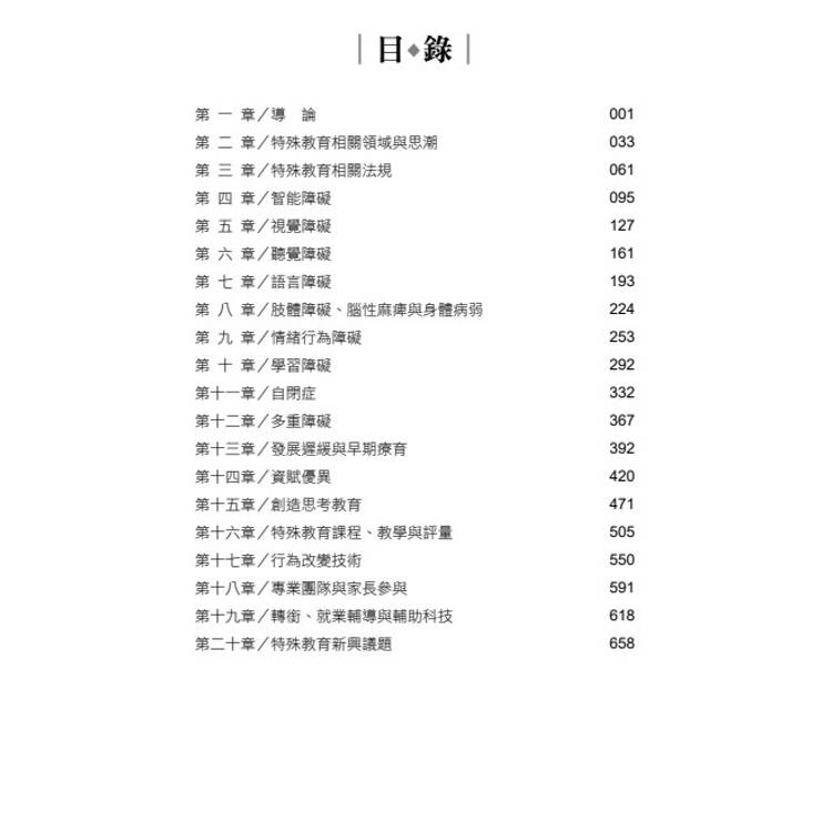 依命題脈絡規劃二十章,涵蓋理論、法規、各類身心障礙、資優教育、課程評量及實務重點,協助考生依章刷題、系統複習,快速建立完整考試架構。