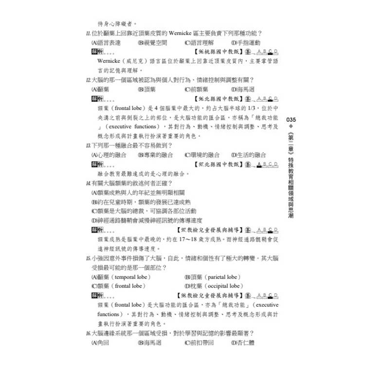 1. 二十章主題式題庫,完整對應特殊教育考試架構: