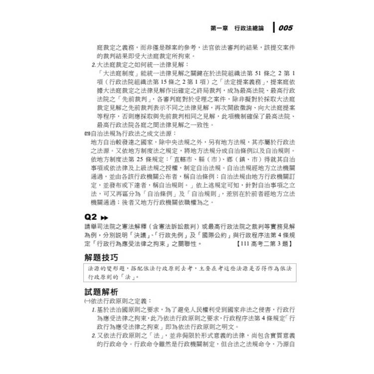 本書的答題架構均採取法學「三段論法」,讓同學在閱讀的同時可以無形中固定自己的正確答題架構。