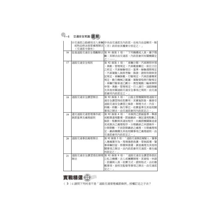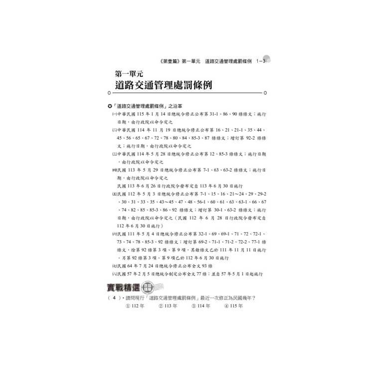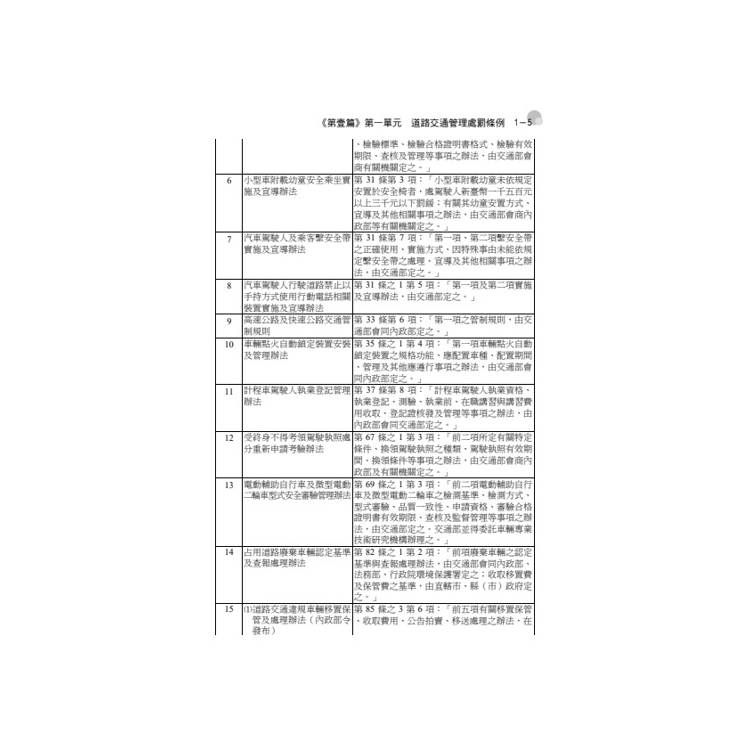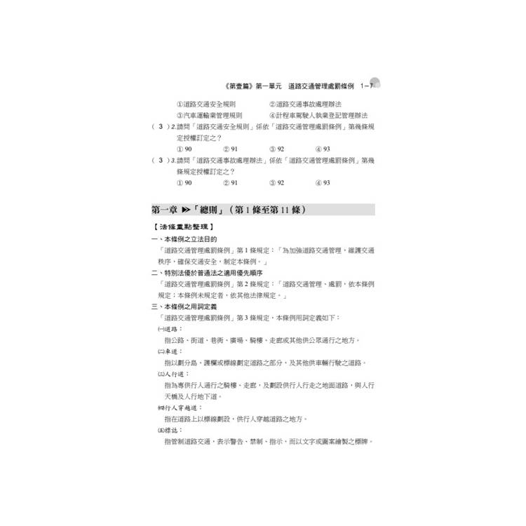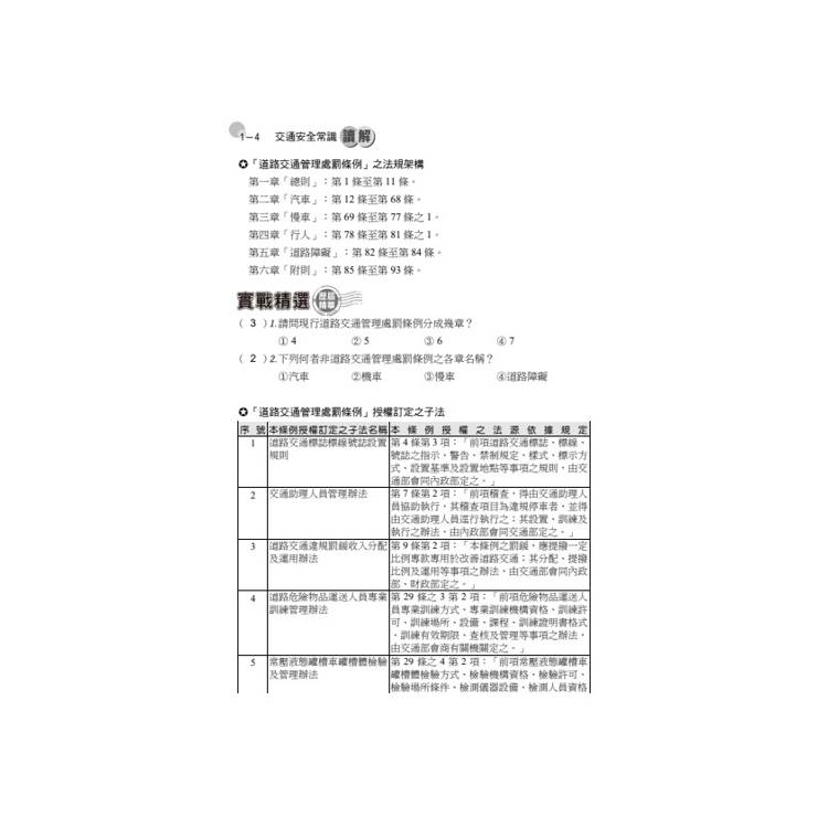 本書依據最新公布的「交通安全常識」相關法規分單元循序編排,各法條重點整理並搭配試題練習,期快速了解考題重點。
