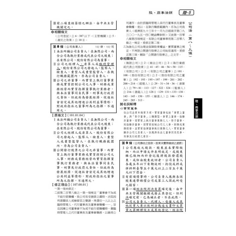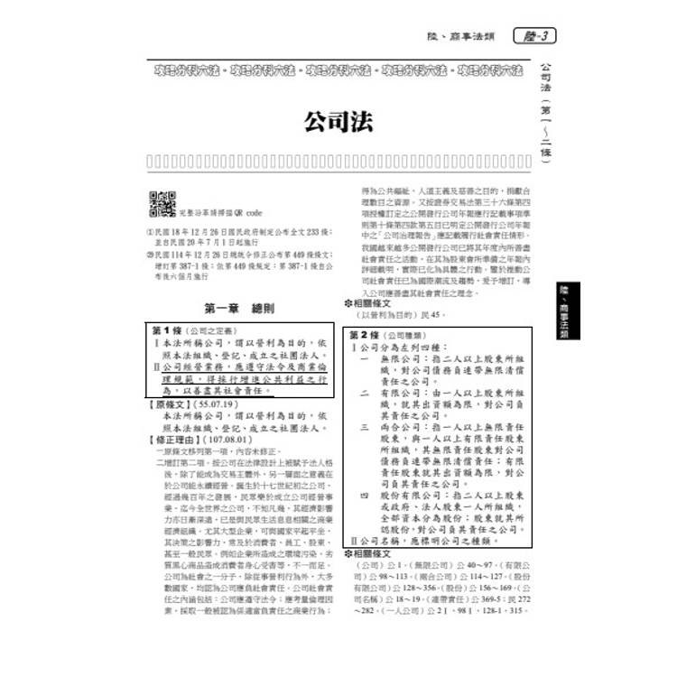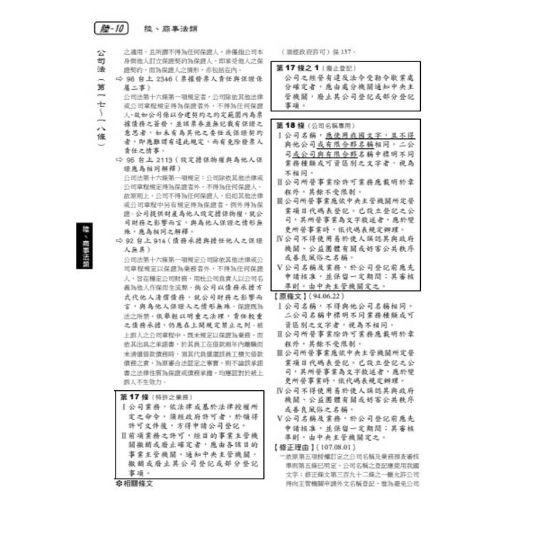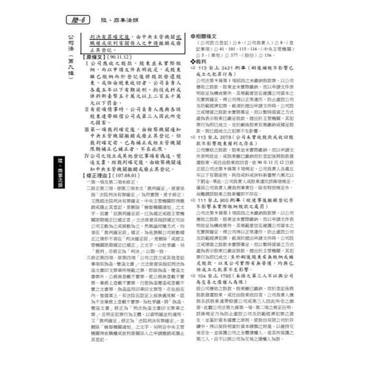 六、修正或立法理由:擇要選錄重要立法理由於條文後,以利精確掌握條文旨趣;另附註有立法日期,另收錄學者對新修正條文的立法批評。