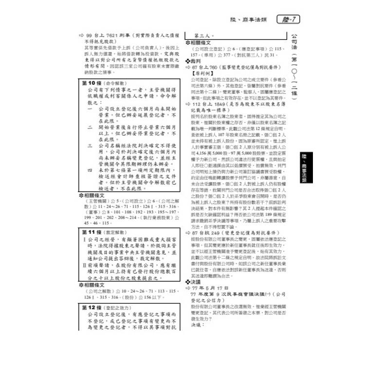 九、實務見解:本書收錄有司法院解釋、判例、判決、決議、法律問題,擇取其中具參考價值者,或予全文或節錄方式。