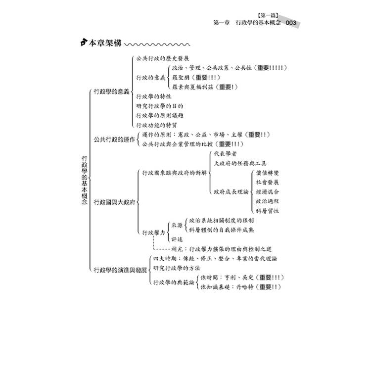 3.重點彙整:精簡行政學重點,增加概念比較圖表,易閱讀。