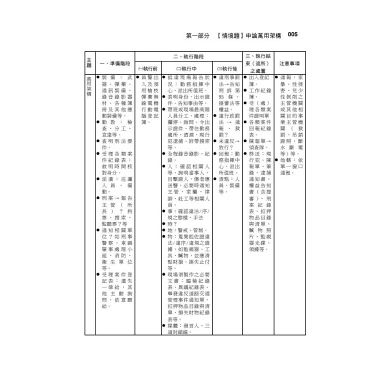 策略為「精要簡薄 不灌水」、「理性編書 不造神」。做法為融入學習心理學、教材教法方法,運用「心像圖」(如圖像式記憶、體系圖、圖表)結合「字鉤法」、「口訣」,協助考生以理解方式記憶「相關法規全貌」、「易混淆、複雜、艱深之理論或法理」,並於附錄促上「各主題字鉤法口訣一覽表」,考生可撕下並隨身攜帶複習,提升長期記憶。