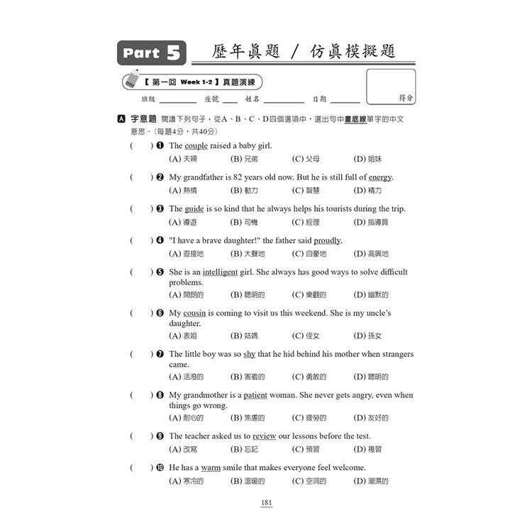 Part 5:歷年真題/仿真模擬題(共八回):181
