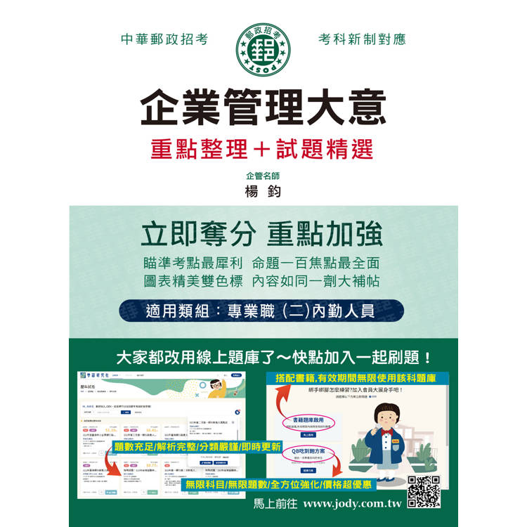 2026郵政企業管理大意:專業職(二)內勤人員適用 [全面導入線上題庫]