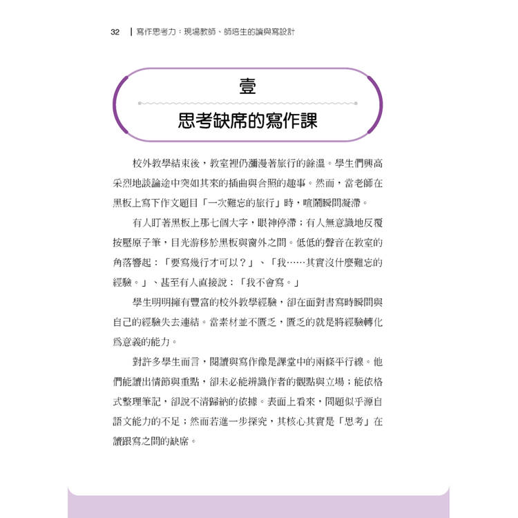 這不只是一本寫作教學書,這是一本關於「如何思考」的實踐手冊。讓思考在課堂裡發生,在文字中生成。
