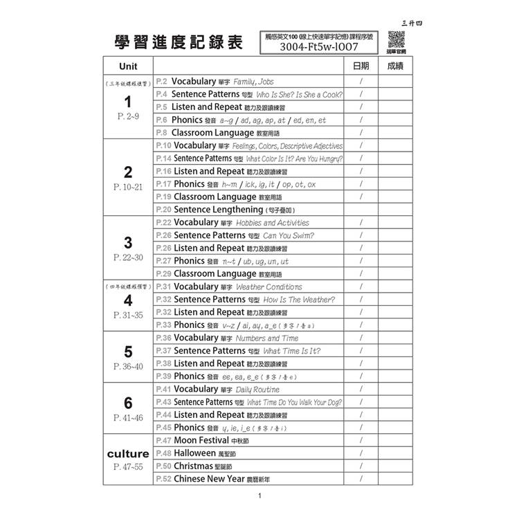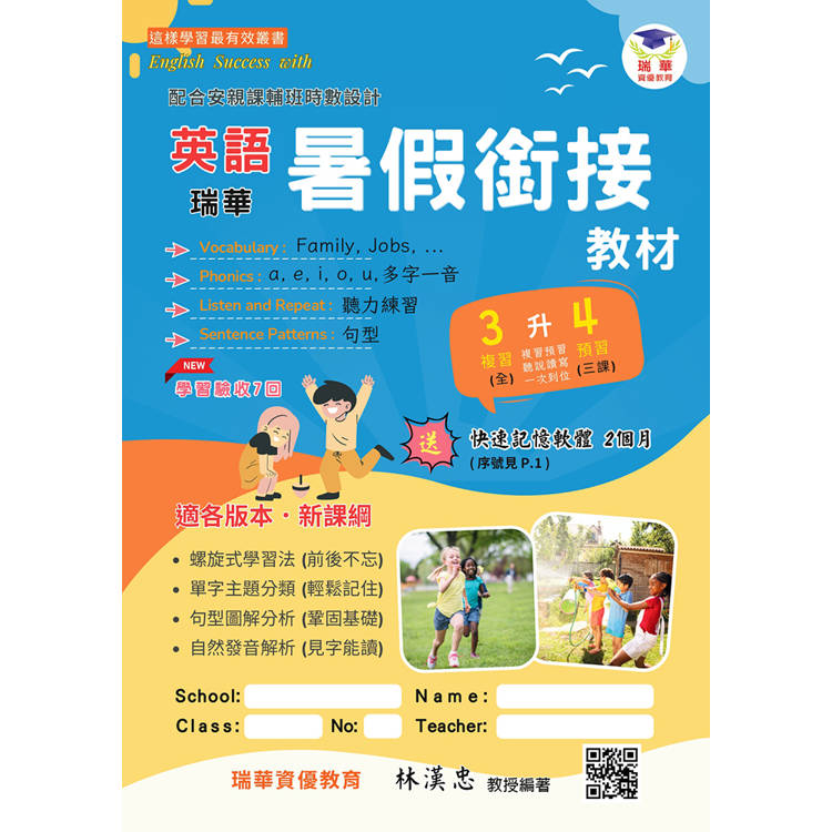 本書旨在提供教師、家長於暑期間,重點式替學生複習上學年學習過的內容,且預習下學期前1/2的內容,以能於開學前即備有基礎的應試力。