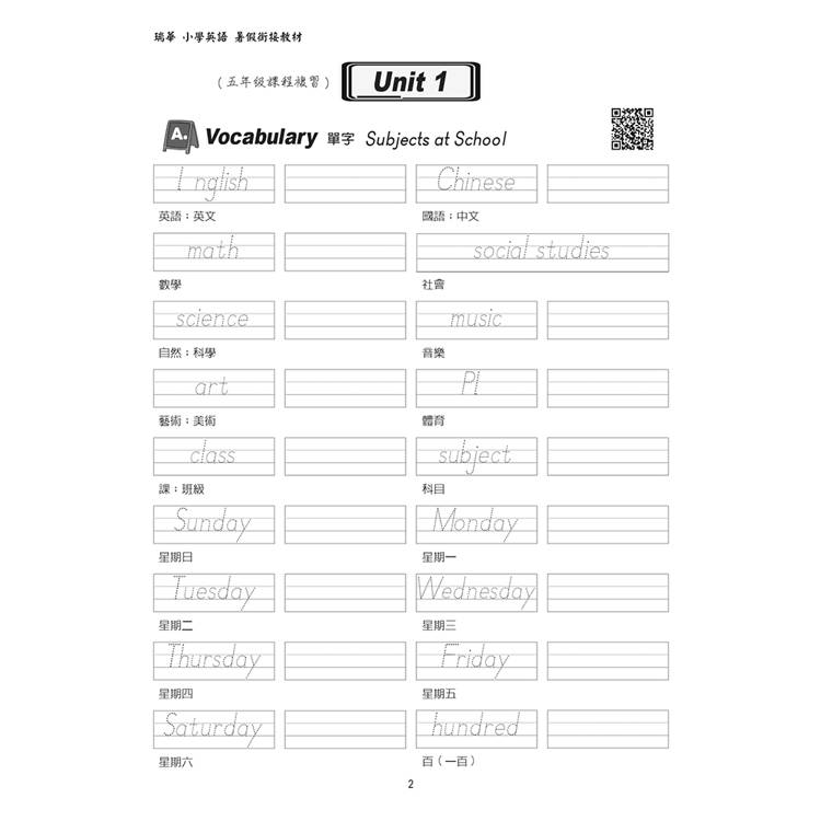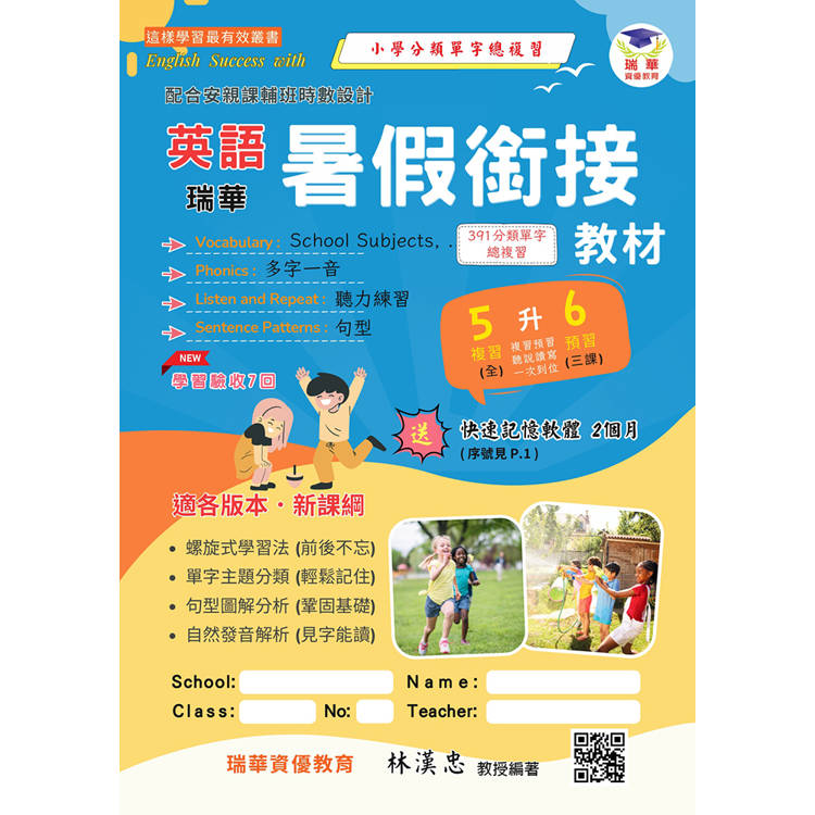 本書旨在提供教師、家長於暑期間,重點統整式替學生複習1~4年級學習過的內容,且預習下學期前1/2的內容,對學生的英語能力做階段性的加強。
