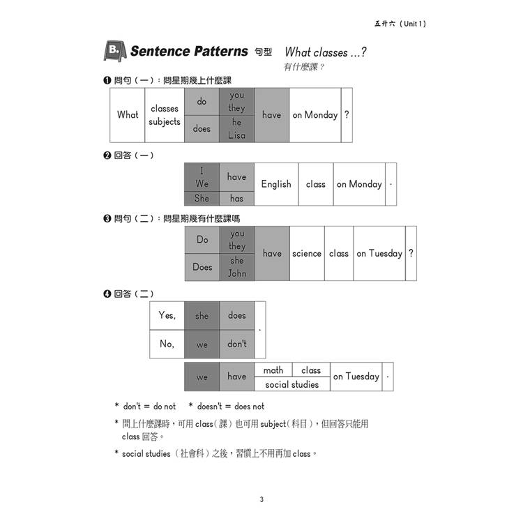 P.3 Sentence Patterns 句型 What Classes Do You Have on Monday?
