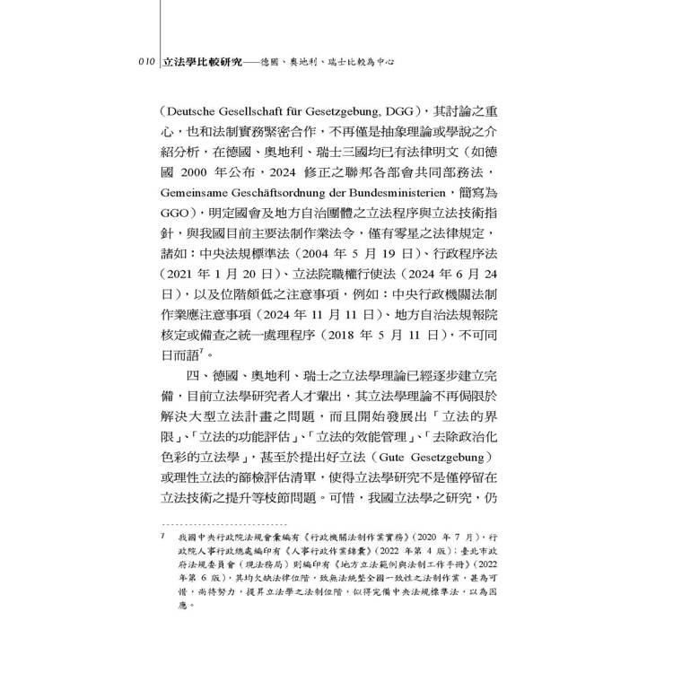 立法學比較研究:德國、奧地利、瑞士比較為中心