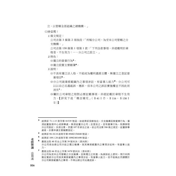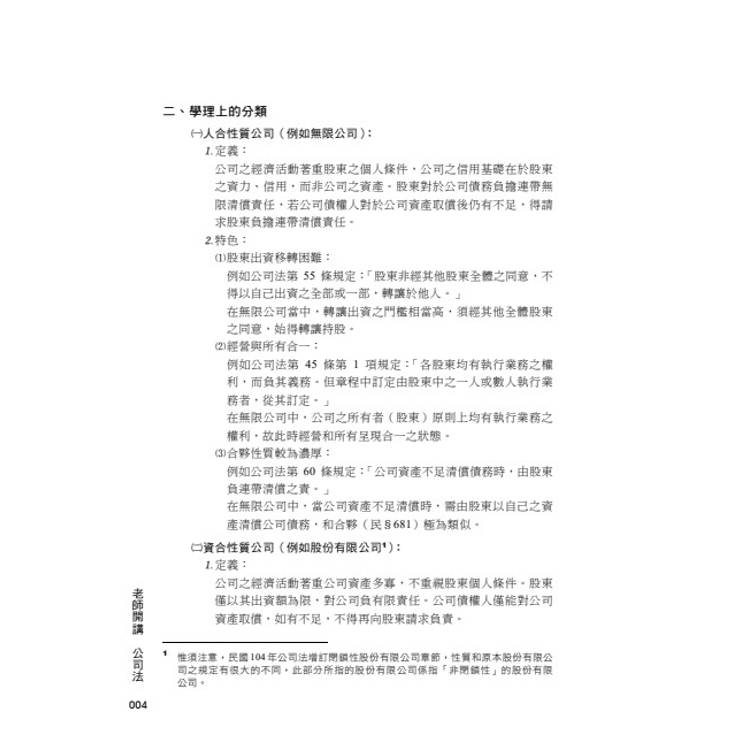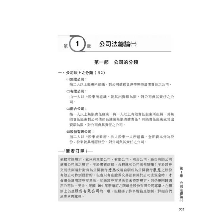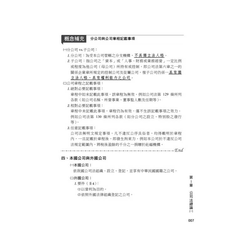 本書寫作架構清晰,標題層次千錘百鍊,絕對嚴選;針對較為艱澀、抽象的概念輔以白話文說明及實際案例解析,讓讀者不再霧裡看花,徹底制伏公司法!