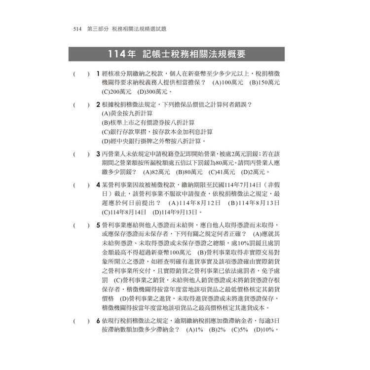 2026【精選題型即時演練 】稅務相關法規概要(包括所得稅法、稅捐稽徵法、加值型及非加值型) [二十四版] [記帳士]