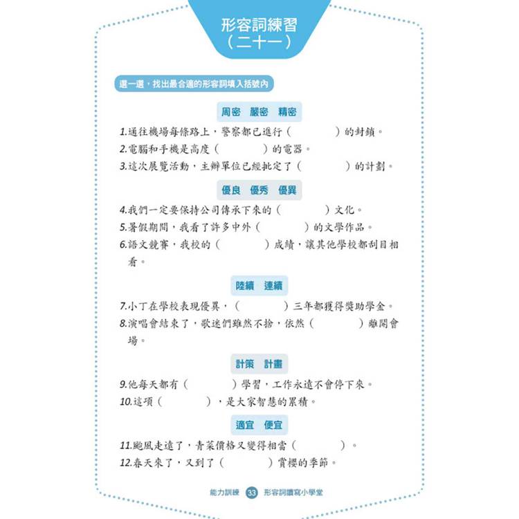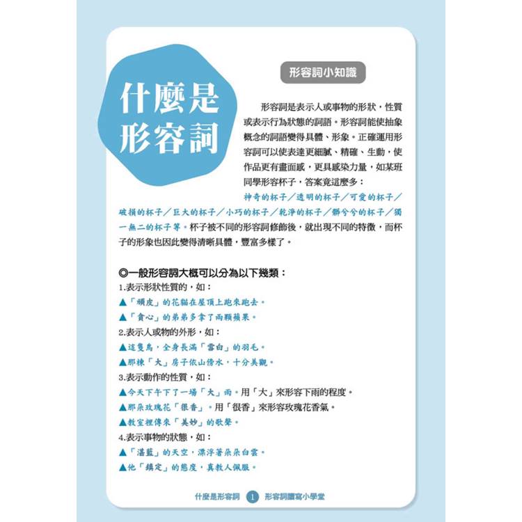 1. 詳細解析形容詞類別,探討形容詞的組合、結構,介紹形容詞正確用法。