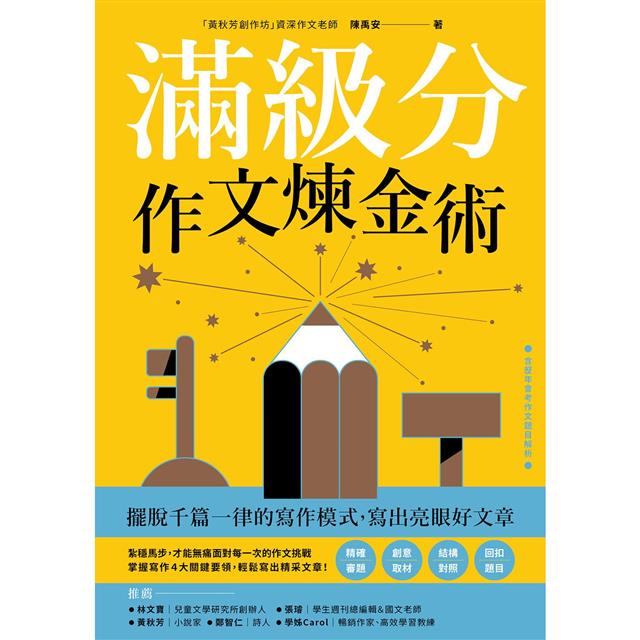 如果,你現在剛好遭逢寫作瓶頸低潮期,或根本不知道該如何寫作文,別懷疑,翻讀這本《滿級分作文煉金術》就對了!你得到的將不只是寫好作文的訣竅,還會找到活出快樂人生的指引。