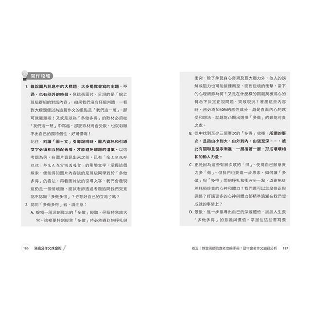 當所有人的文章如出一轍時,若能寫出一篇有個人思想特色、別人複製不來的精采文章,勢必能抓住閱卷老師的目光!