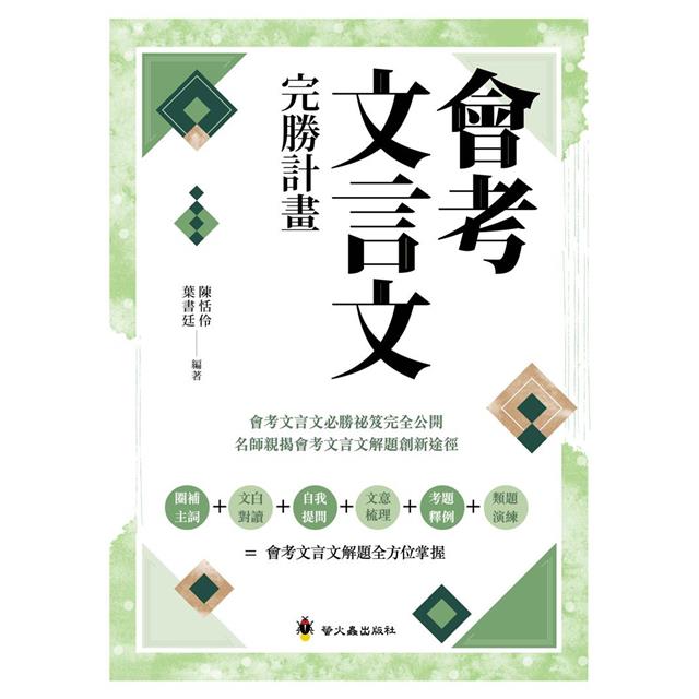 本書通過歷屆的會考試題為例子,詳細說明文言文的閱讀重點,引同學入門再利用類似文章來進行學習遷移,藉以不斷地提升解題的能力和策略,相信只要好好做,一定能破除文言文的學習焦慮,在會考國文考科中取得好成績。