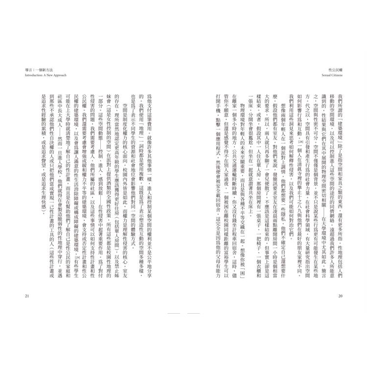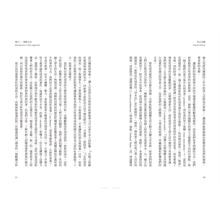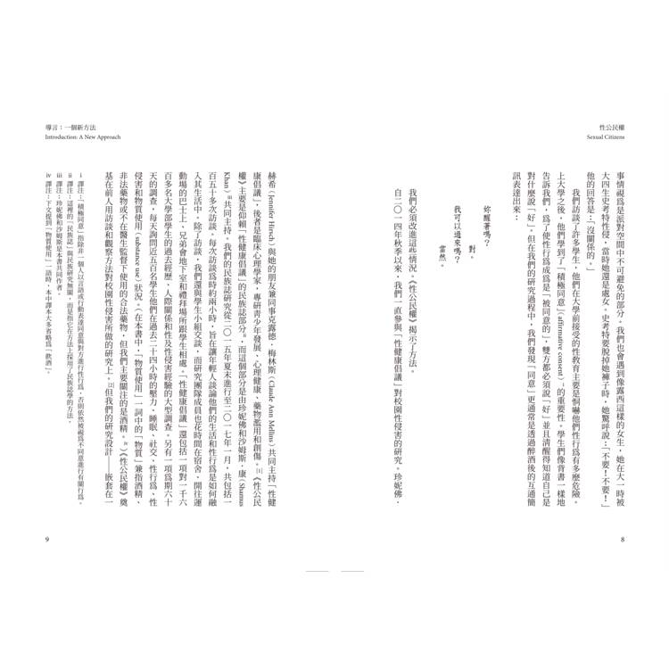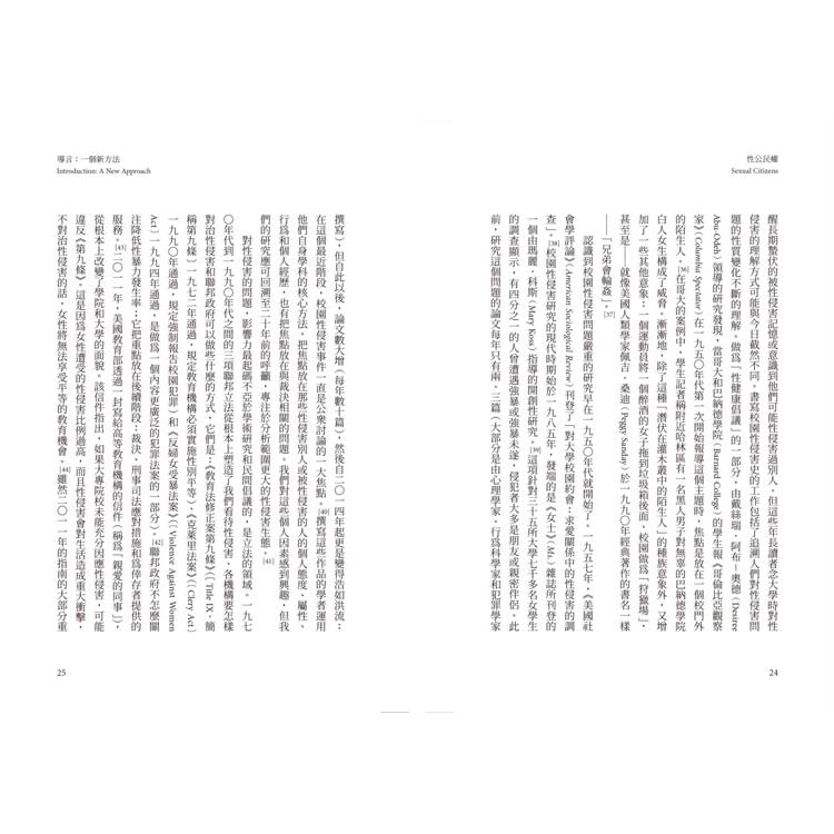◎《性公民權》來的正是時候,特別是在2022年通過的《跟騷法》和2024年開始實施的性平三法修訂版之後。這本書強力的田野資料,正如探照燈一般,穿透性自主和性暴力黑暗幽微交織的權力關係,讓我們看清在父權文化和政經不平等關係中所營造出來的迷霧。雖然以美國校園性侵害為討論題材,但對台灣的校園甚至職場的性侵害會有很多啟發。──成令方(高雄醫學大學性別研究所退休教授)