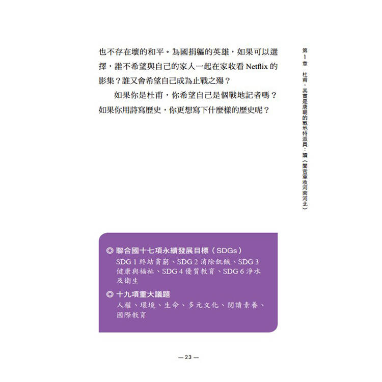 這當然對學習很有幫助,作者還很貼心的在文末附上了跟SDGs、十九項重大議題等標籤,讓老師可以在課堂上使用得更加得心應手。但我認為就算你不是中學生或老師,你都能在翻開這本書後,和中學時期的你一起,更加深入地認識這些經典文學作品。