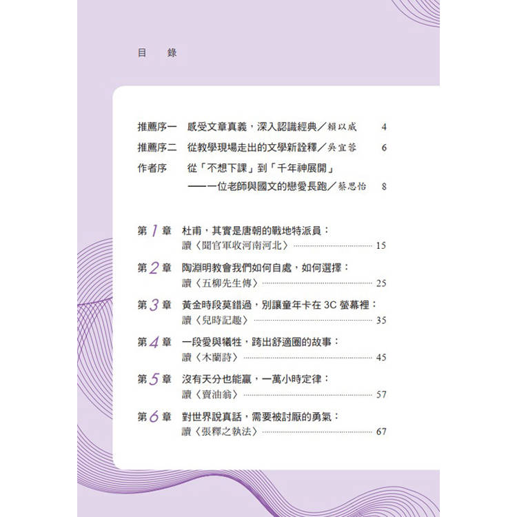 本書由109年全國閱讀推手、翻轉教育專欄作家蔡思怡主筆,將古文變成風華名饌,讓孩子閱吃閱好吃,從閱讀中找自己!