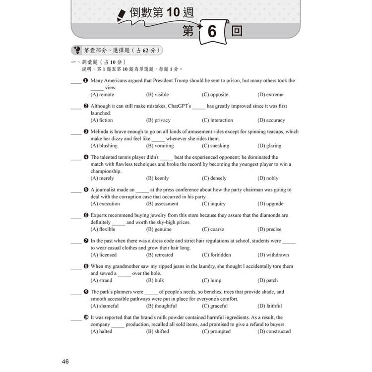 這15週,也是一場高效複習的旅程。只要按部就班,搭配我們的複習計畫表,每週只需完成一回,你會發現自己不斷累積信心與實力。等走到最後一回,你就已經準備到位、心態到位、實力到位。