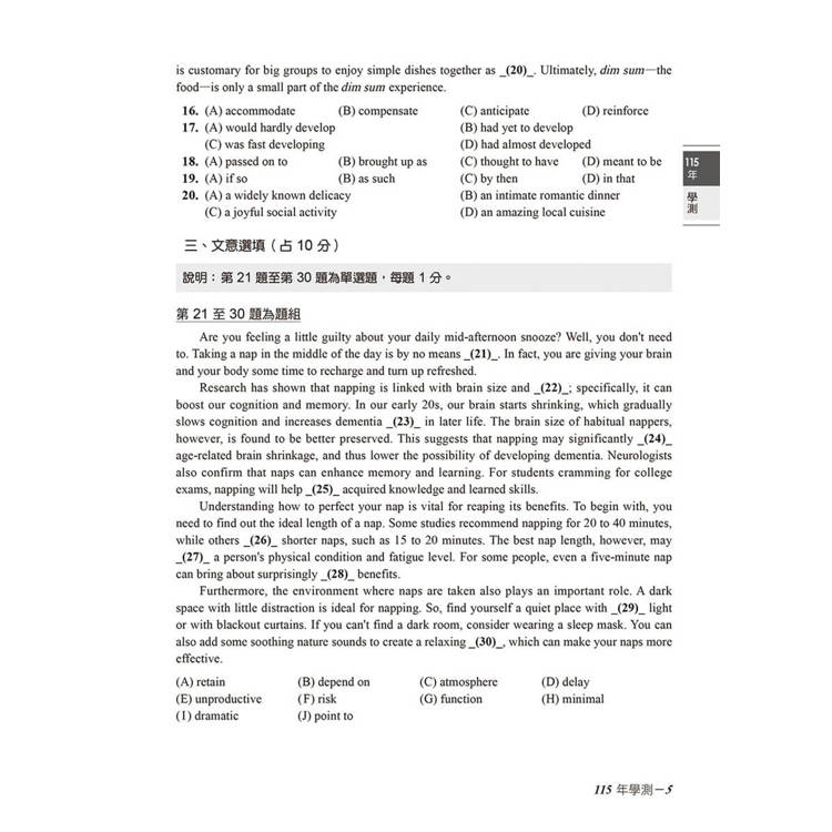 近五年英文學測/指考試題詳解-試題本+詳解本(115年版)