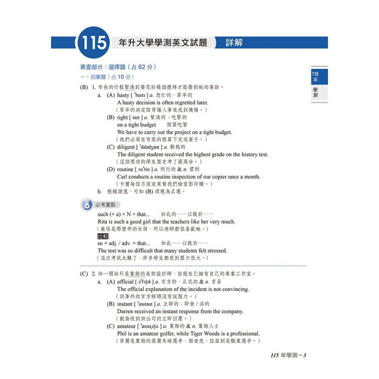 ﹝115年升大學學測 / 指考英文詳解本﹞