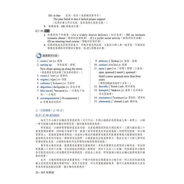 此外,為了讓考生多加熟悉新制學測的考題,在本書中特編入110年試辦學測試題並加以詳細解析、翻譯,期望讀者能充分利用,提升應考戰力。