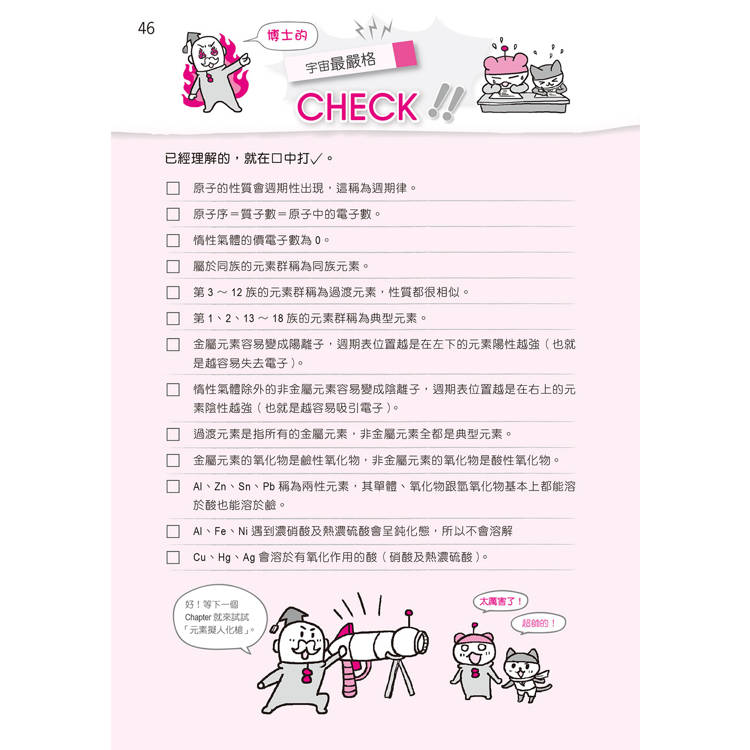 4. 紮實的檢測機制:每一章結尾都設有「博士的宇宙第一嚴格測驗」,搭配附錄題庫,幫助養成實力!