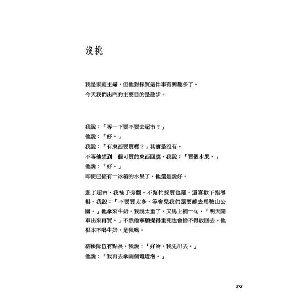 進了超市,我袖手旁觀。不幫忙採買也罷,還喜歡下指導棋。我說:「不要買太多。等會兒我們還要繞去馬鞍山公園。」他拿來牛奶,我說太重了,又馬上補一句,「明天開車出來再買。」不然他寧願提得重死也會捨不得放回去。他根本不喝牛奶,是我喝。