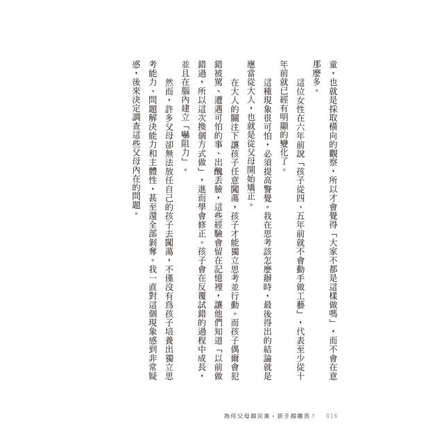 ★我原本以為這是一本反對高學歷父母過度保護子女的書,但恰恰相反,他傳達出作者對高學歷父母的期望。受過高等教育的父母擁有更高的經濟實力和智力,能夠更自由地養育子女。教養最困難的不在於經濟,而是父母的全心信任。