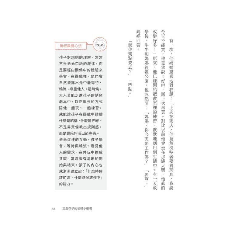 在這本書中,父母不再只是指導者、解決問題的人,而是孩子情緒歷程的共演者與導演。透過戲劇心理學的概念,家長將學會:
