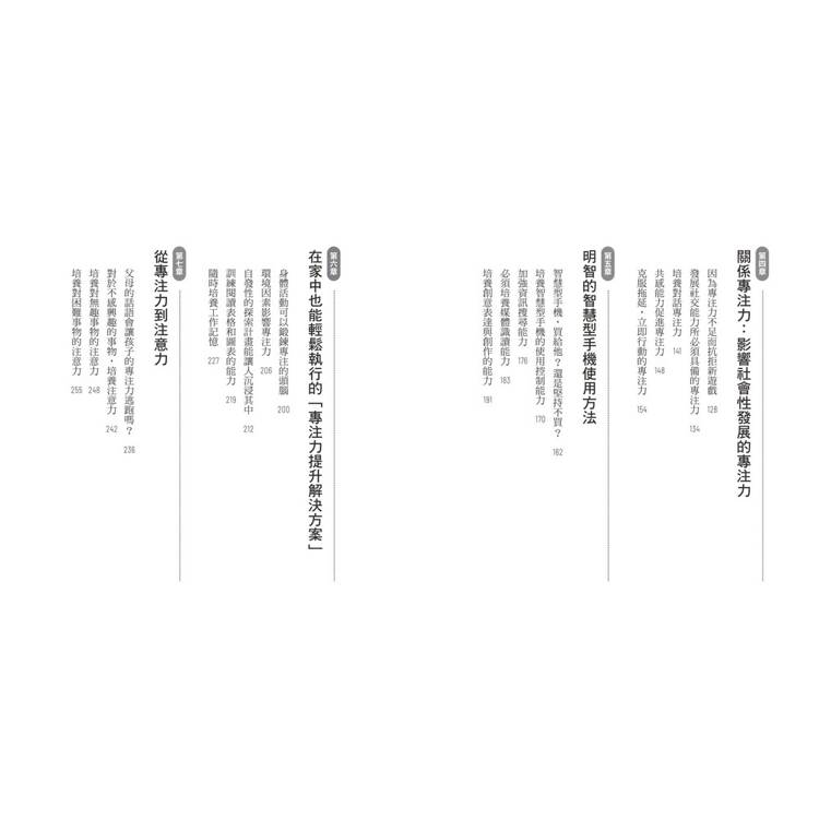 孩子雖然帶著專注力出生,但是各成長階段的專注力發展並非自然而然地發生,即使他們有著想要好好專心的意志,專注也不是件容易的事。老師或家長要求孩子集中注意力,或是嚴厲指責時,不見得就有效果,反而只會讓專注力更不集中,更甚者,可能還會將專注時間短暫誤以為是專注力不足而責怪孩子,如此一來,就連他們天生的專注力都會消磨不見。再加上智慧型手機帶來的強大影響,孩子們原本具備的專注力正逐漸被奪走。