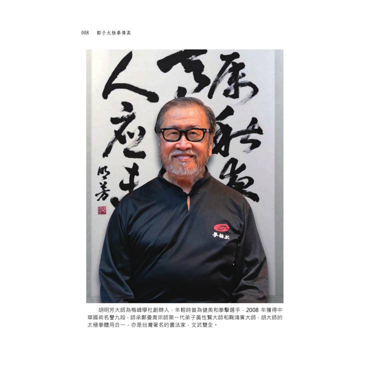 「寧循理以求進,勿逾矩而爭強。」今有武誠君本著傳承 鄭宗師的「善與人同,達兼天下」之胸懷,而編著「鄭子太極拳傳真」一書,祈以盡己力發揚鄭子太極拳。全書以拳式運行順序圖、動作規格、足步圖和心法要領等四部份為重點,詳盡明確的闡述鄭子太極拳和鄭子五十四式太極劍的學習方法等。然修習者當須明技法,而法不離理,理為本,懂理而自明,依法而練即可,別無捷徑,當中緣遇明師指引更臻至善!此著作實為有志於精進鄭子太極拳的同道及新手教練,提供了很好的參考藍本。由道而藝、由藝而器,內外貫通,著作付梓問世,實有延續推廣之功,拙筆樂為之序。