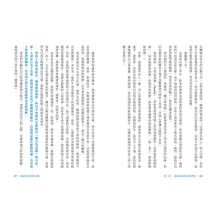 書中將複雜的依附理論轉化為具體、可實踐的語言與情境示例,讓父母在孩子不同發展階段中,知道如何回應情緒、設立界線、修復衝突,並在愛與規範之間找到穩定而不失彈性的平衡。更重要的是,它不把父母放在「執行者」的位置,而是邀請我們成為孩子關係中的「安全基地」——一個能讓孩子安心回來,也能放心離開的地方。如同作者所說:「我們大多數人必須做出的核心心態轉變,就是從以「控制孩子」為中心的責任,轉向以「連結孩子」為核心的責任,這樣才能讓孩子與我們建立起安全依附。」