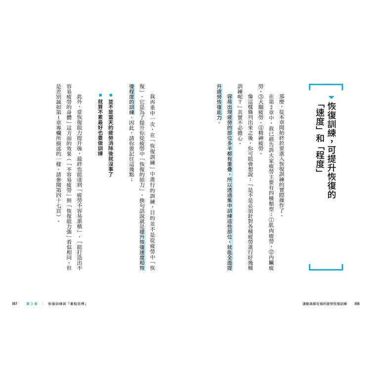 他發現,想要徹底擺脫疲勞、恢復體能,不能完全休息不動,也不能繼續做重訓等負荷訓練,而是要透過「疲勞恢復訓練」,消除疲勞的同時,打造超強的恢復體質。