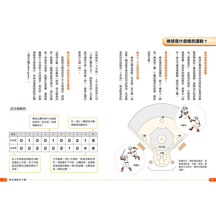 所謂「外行看熱鬧、內行看門道」,身為熱愛棒球的家長們,這時就該準備一本實用的入門書,來讓孩子們能更加瞭解棒球運動的博大精深與迷人魅力囉!此書透過哆啦A夢與大雄多位好友們的漫畫故事介紹,從規則、觀念到技巧,循序漸進、由淺入深,讀起來也趣味橫生,相信不只能享受閱讀看棒球的樂趣,亦能進一步啟發起身打棒球的興趣。推薦給您與孩子們!