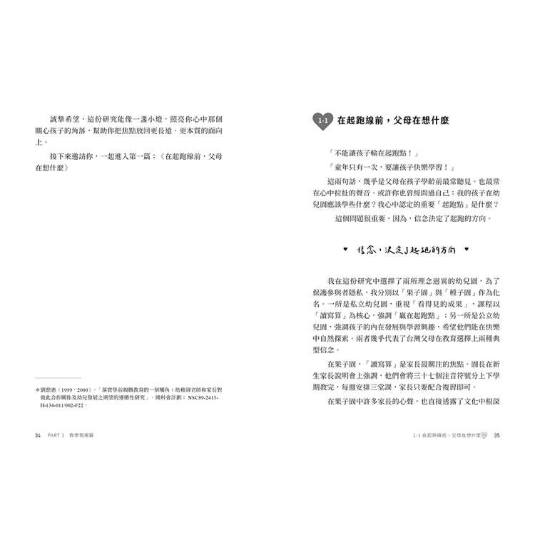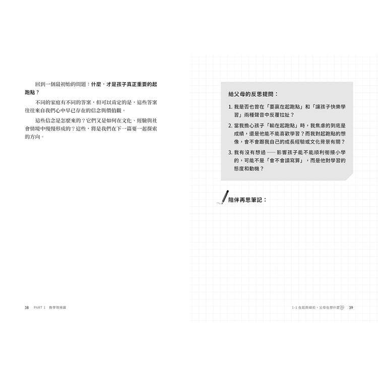 誠摯盼望,這不只是我的書寫,更能成為你閱讀過程中的一場深刻對話。因此,在每篇最後的「給父母的反思提問」下,留有半頁的空白,邀請你寫下屬於自己的「陪伴再思筆記」。