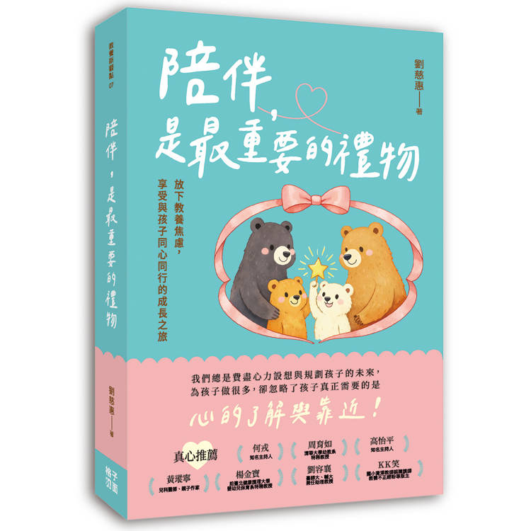 《陪伴,是最重要的禮物》不是一本速效的教養技巧大全,而是作者劉慈惠教授將三十多年教養研究的深度、實務的厚度、關係的溫度,以溫暖、真摯、平易的筆觸,運用罕見的融合方式串接,透過許多真實故事與心聲,帶你理解教養的底層邏輯,以及教養更為周延的樣貌及長遠盼望。