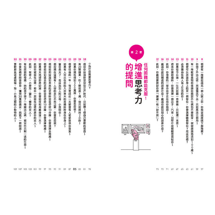 如同前文提到的,本書有1~100個問題。可以從1按順序提問,也可以隨意翻閱,從自己感興趣的問題問起。