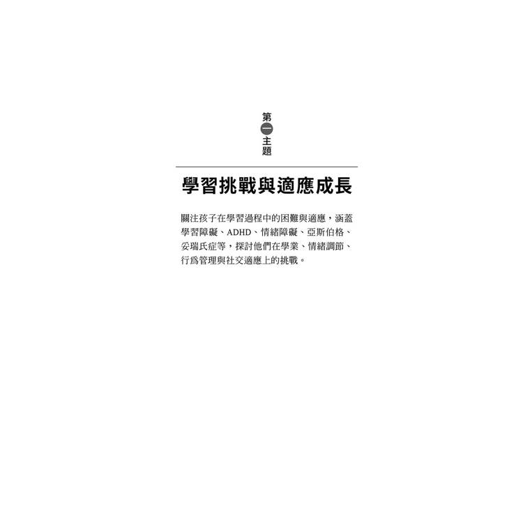 關注孩子在學習過程中的困難與適應,涵蓋學習障礙、情緒調節、行為調整與社交適應等面向。