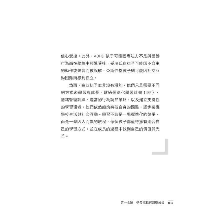 這本書中的每一個故事都在提醒我們,這些孩子並不是「有問題的孩子」, 而是「面臨問題的孩子」。無論是學習障礙、情緒障礙、注意力缺陷過動症,還是社交困難,每一個孩子的背後都有他們獨特的生命經歷。文炎用他的專業和愛心,幫助這些孩子找到面對困難的勇氣。