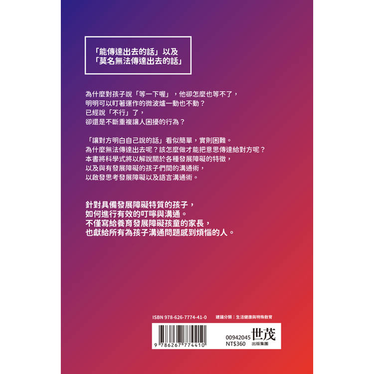 從臨床與實務經驗出發,深入解析該如何與發展障礙兒童溝通,帶領讀者理解:孩子的拒絕,往往不是任性,也不是教養失敗,而是來自感覺、預測與安全感的困難。