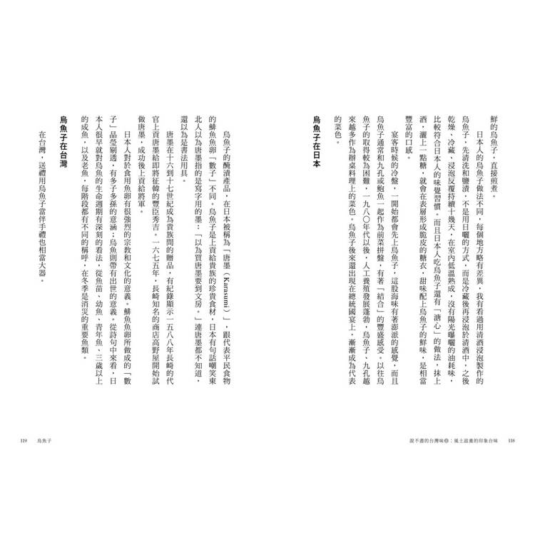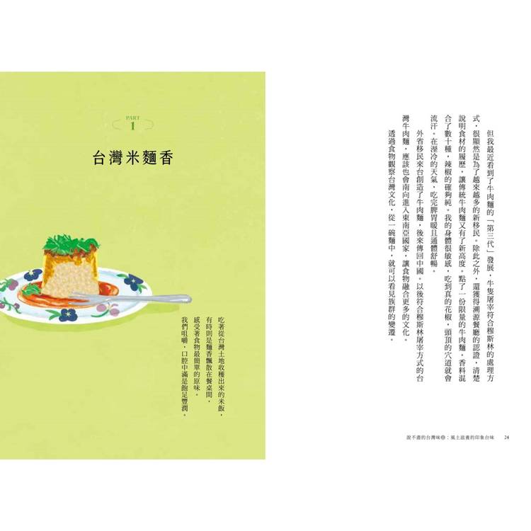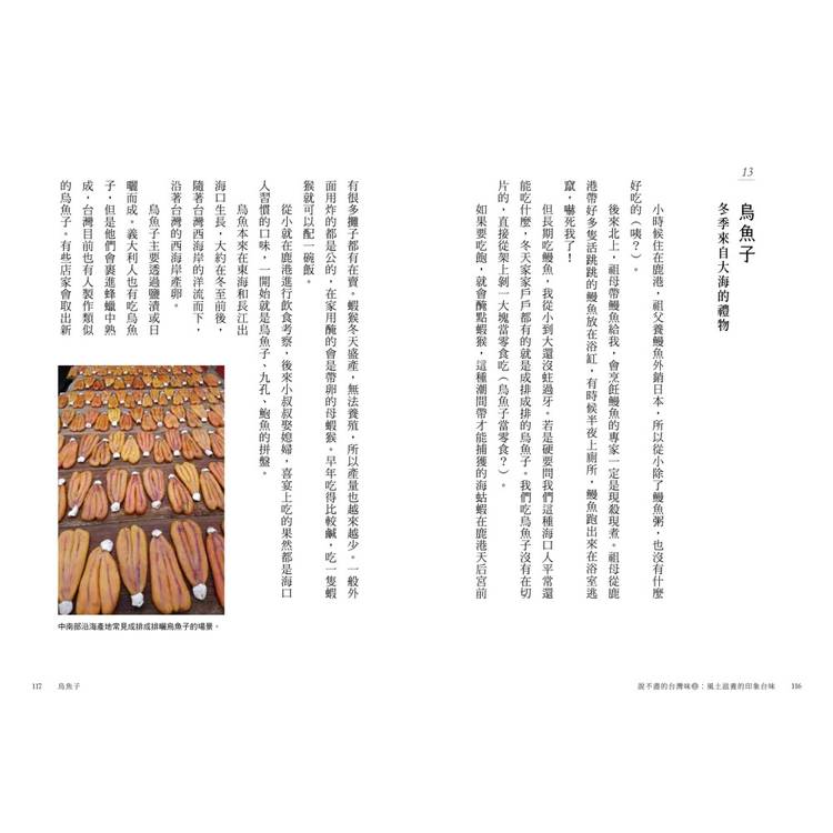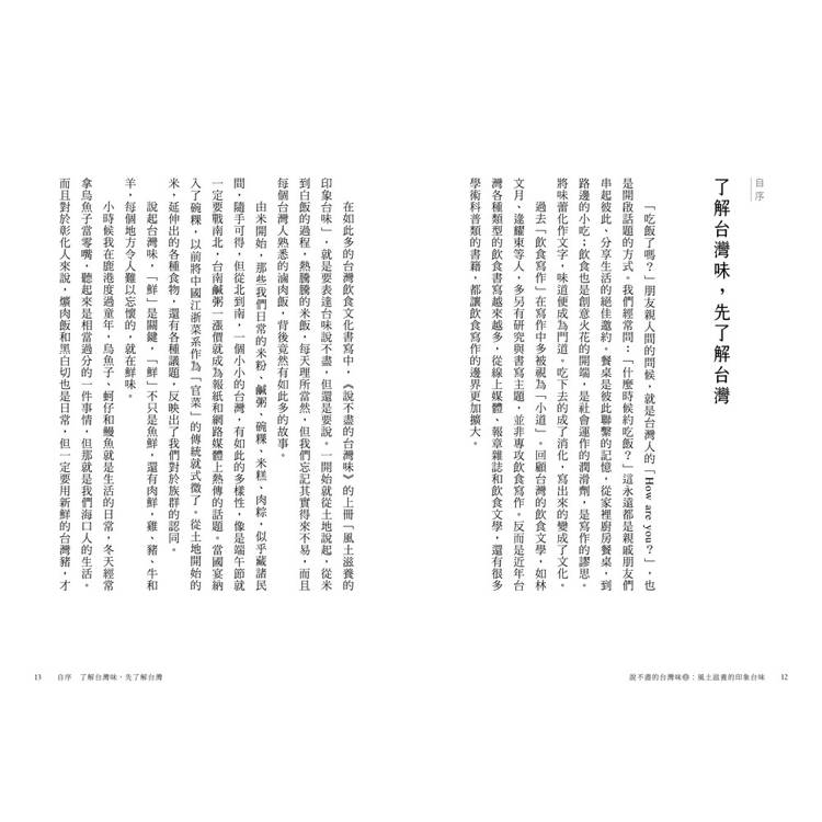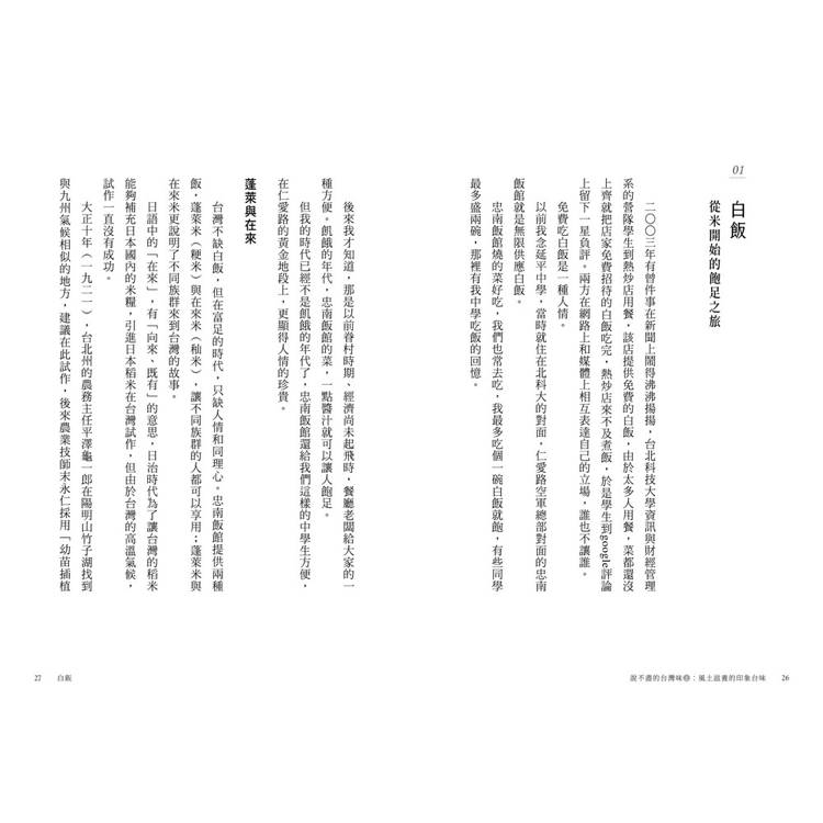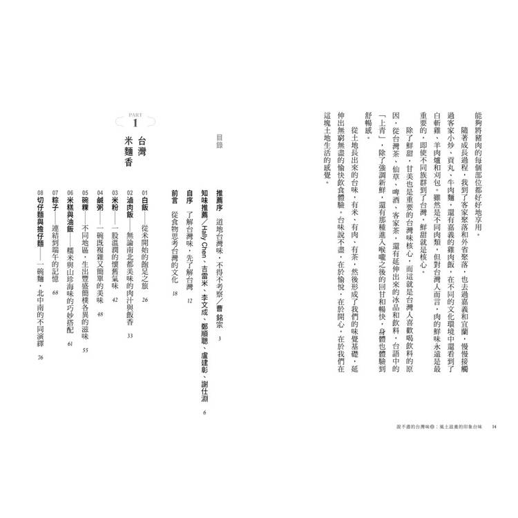 這些從台灣風土長出的滋味,有米、有肉、有茶,各色料理養成了我們的味覺基礎,而那些鮮美、甘甜又讓人印象深刻的味道基底,在在顯示出由我們土地養成的各種飲食深層記憶。那記憶或許來自無窮盡的愉快飲食體驗,更是我們在這片土地上生活過的實感。